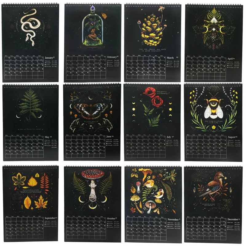 1 PCS Dark Forest Lunar Calendar 2024 Paper Wall Calendar Colorful